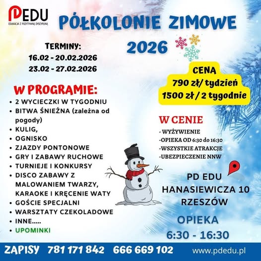 PÓŁKOLONIE ZIMOWE 2026 w Rzeszowie! Zimowa przerwa w szkole nie musi być nudna! Zapraszamy dzieci na wyjątkowe półkolonie pełne atrakcji, zabawy i […]